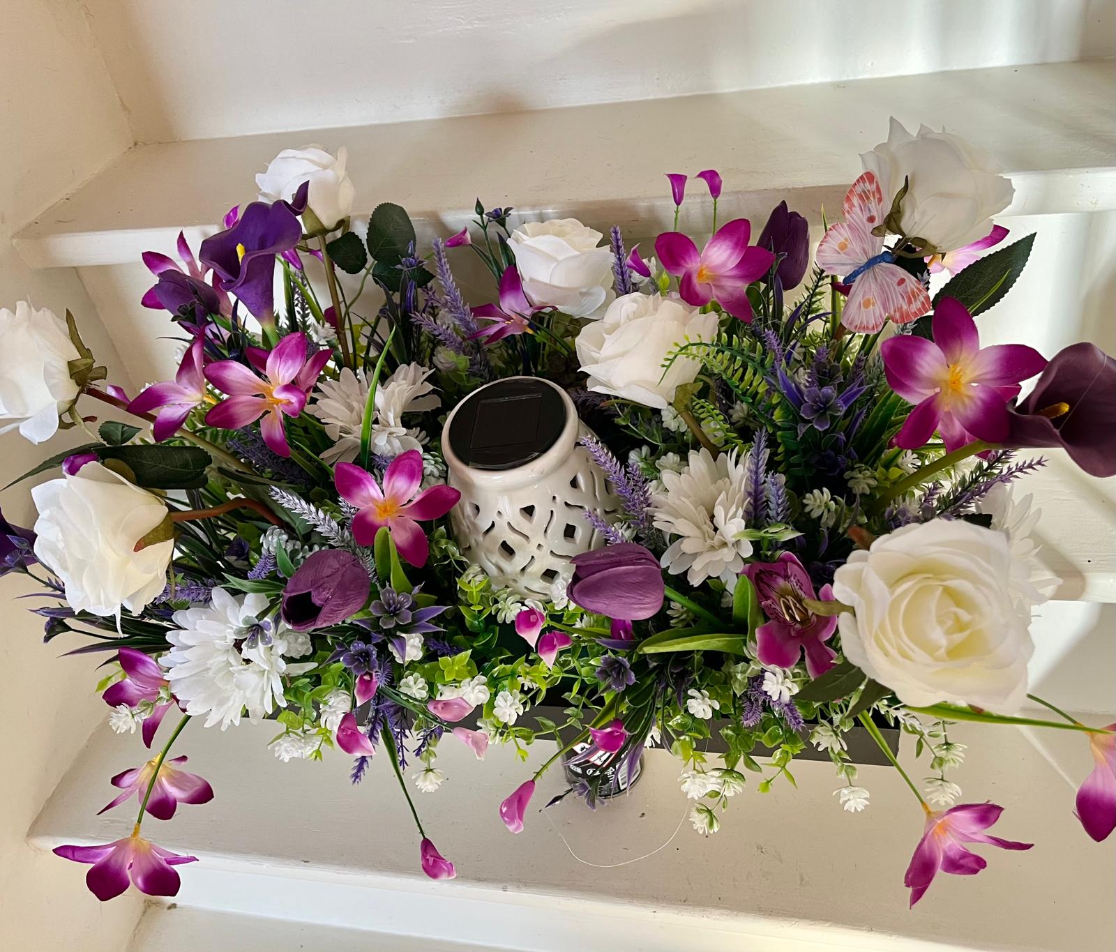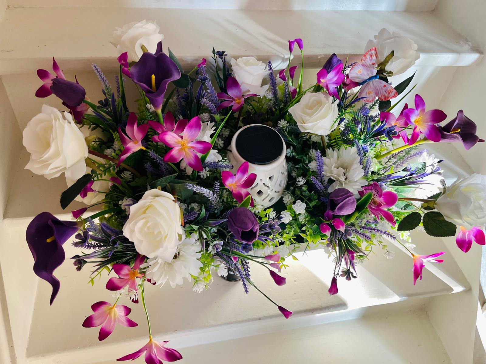 Maten van dit bloemstuk zijn: 55 bij 35cm